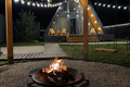 Большая костровая чаша, чтобы пекарить маршмеллоу и провести вечер, наблюдая красивый огонь и звездное небо