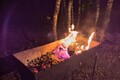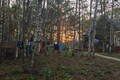 Костёр с жареным хлебом сосисками и печёной картошкой.