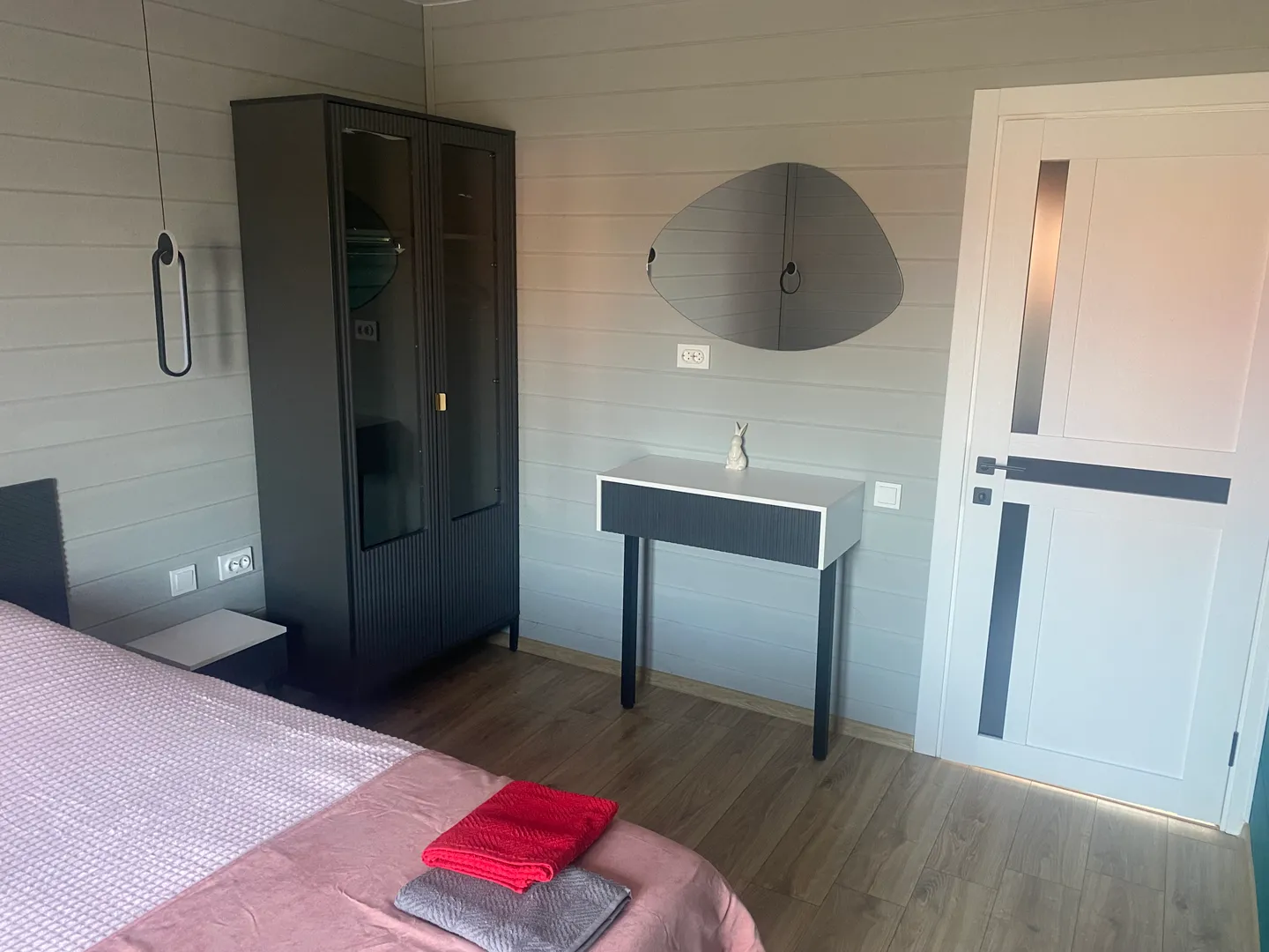 Дом — это просторные светлые комнаты, наполненные теплом дерева и мягким светом. В двух спальнях вас встретят уютные двуспальные кровати с качественным бельём, а в гостиной — глубокий диван, где с комфортом разместятся ещё двое гостей. Интерьер продуман до мелочей: изумрудные акценты мебели, стильный текстиль, деревянные поверхности и тёплое освещение, которое можно менять под настроение — от яркого утра до мягкого вечернего света.