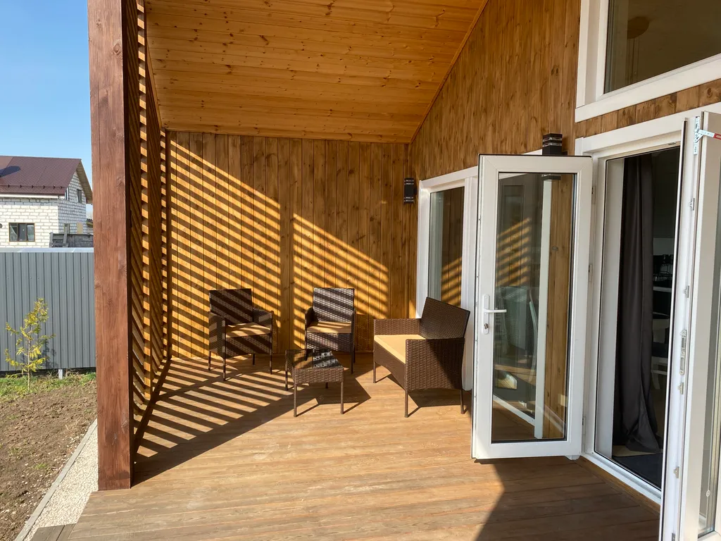 Современный дом, стильный, уютный. Есть костровая зона и место для авто на территории. Всё понравилось )